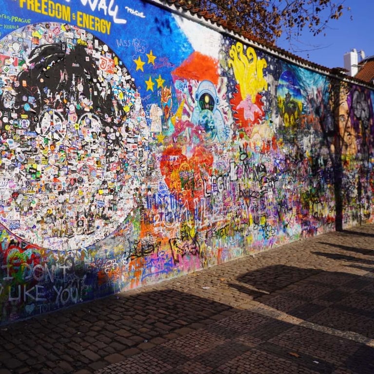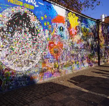 Na koniec warto odwiedzić Ścianę Johna Lennona na Małej Stranie. Z założenia miało być to miejsce pełne kolorowych graffiti i inspirujących napisów. Z założenia świetne tło do zdjęć, w praktyce nasze największe rozczarowanie. Oryginalne graffiti zostało całkowicie zniszczone przed podpisy turystów i często wulgarne napisy. Może bliżej sezonu letniego ściana jest malowana od nowa? Dajcie znać jeżeli ktoś wie - my nie polecamy.